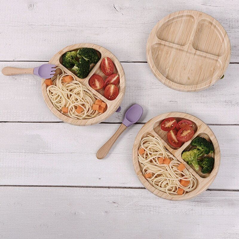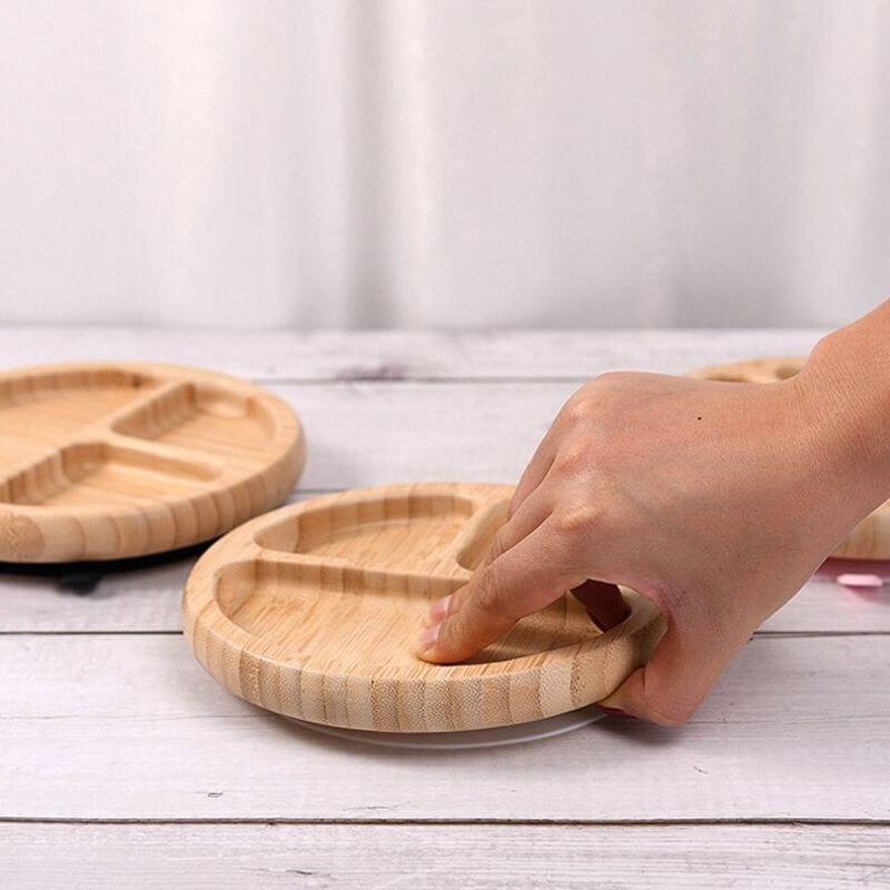 Découvrez notre assiette bébé en bambou avec ventouse et compartiment, un must-have pour les repas de votre tout-petit.