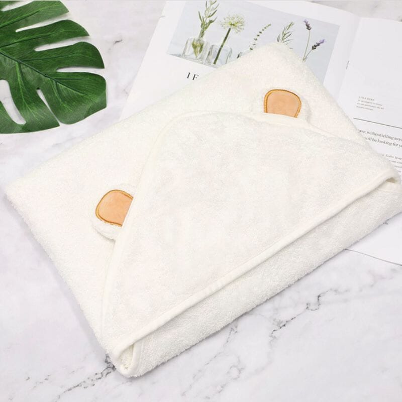 Notre cape de bain carré blanc avec des oreilles d'ourson sur la capuche est un cadeau parfait pour les nouveaux parents ou pour votre propre bébé. Commandez dès maintenant pour offrir à votre bébé une expérience de bain confortable et douillette !