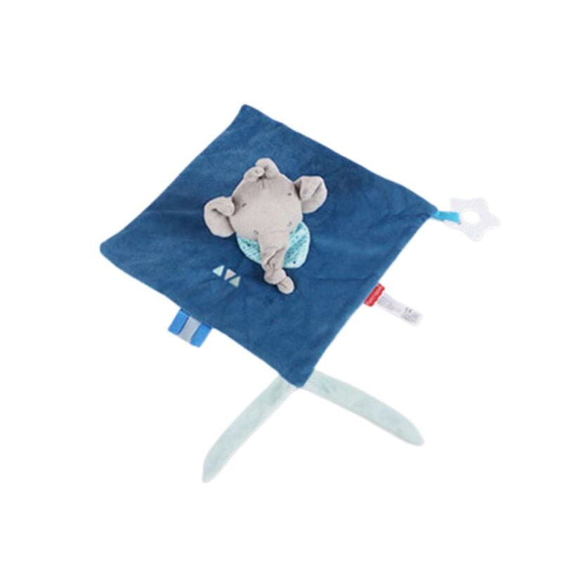 Notre doudou éléphant est un compagnon de jeu doux et réconfortant pour votre petit bout de chou. Avec sa forme plate et sa tête en relief d'éléphant gris, il est facile à câliner et offre une texture amusante à toucher.