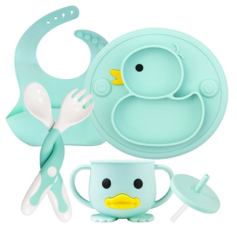 Le kit repas bébé en silicone est le compagnon idéal pour les parents occupés qui veulent offrir à leur bébé une alimentation saine et ludique.