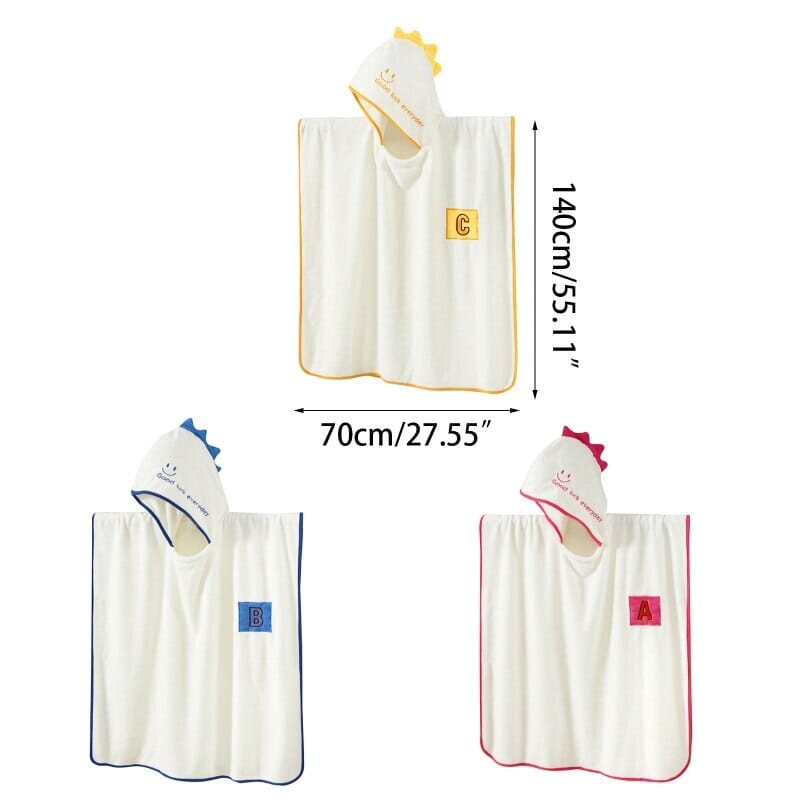 Offrez à votre bébé une sortie de bain dinosaure adorable et confortable grâce à notre sortie de bain en coton et polyester aux dimensions généreuses de 140x70 cm.